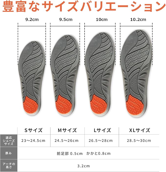 特徴 アーチサポート, クッション, 抗菌, 衝撃吸収性, 防臭