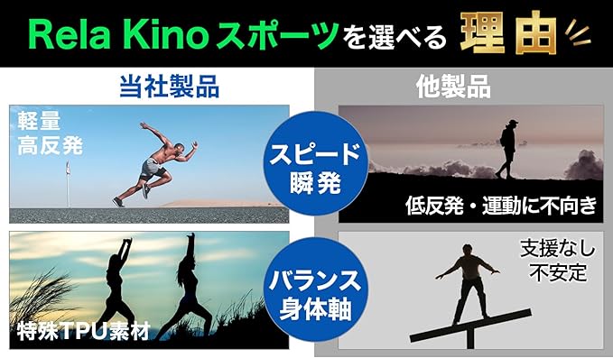 【運動に特化した設計】により、各スポーツで活躍できます。ウォーキング ランニング トレッキング 登山 といった長時間の使用に。 サッカー フットサル テニス バスケ バレー に必要なクイック/ジャンプ動作に対応。身体の軸が重要な 野球 ゴルフ でもご使用いただけます。