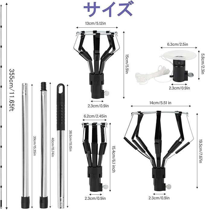 ランプチェンジャー コウショ 電球チェンジャー 伸縮式355cm延長ポール 高所 電球交換棒 取り外しツール バスケットと吸盤付き 天井 Ledランプチェンジャー 埋め込み型 取り外しツール 果物狩り フルーツ収穫取り