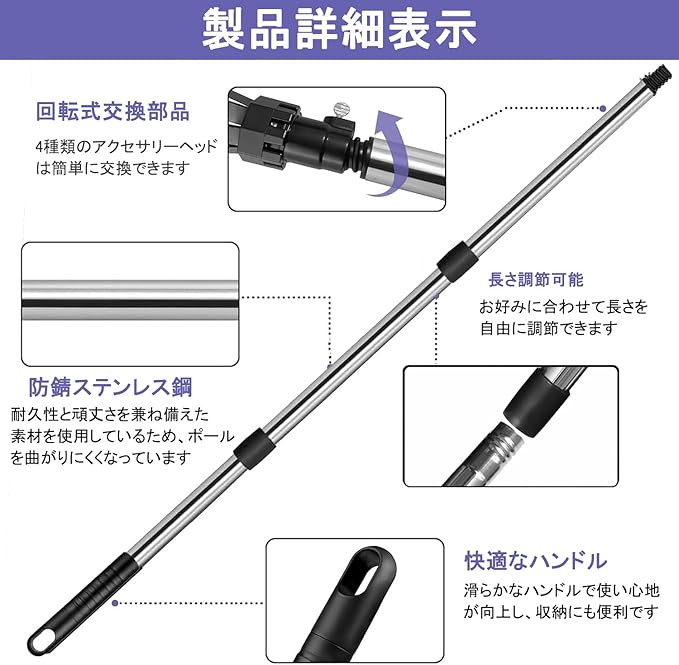 【汎用性の高い3/4インチネジ付きヘッド】:当社の電球交換ポールヘッドは、標準的な3/4インチのネジで設計されており、幅広いアクセサリー製品と互換性のあるインターフェイスです。例えば、当社独自の電球チェンジャーアクセサリー、天井ツールアクセサリー、フルーツピッカーアクセサリーなど。