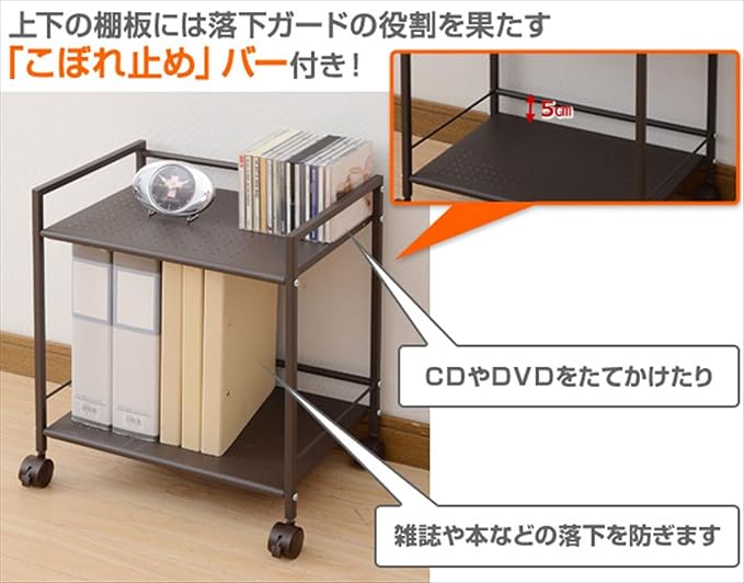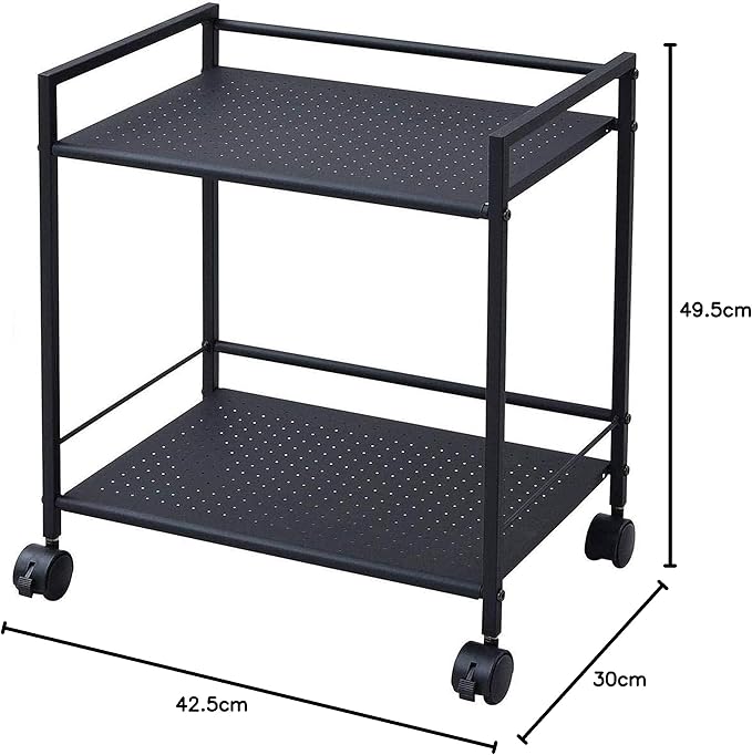 山善(YAMAZEN) スチールラック 2段 全体耐荷重20kg A4対応 2WAY仕様(ストッパー付きキャスター/固定式アジャスター) 幅42.5 奥行30 高さ49.5cm サイドワゴン 組立品 ブラック CPR-50432C(BK) 在宅勤務