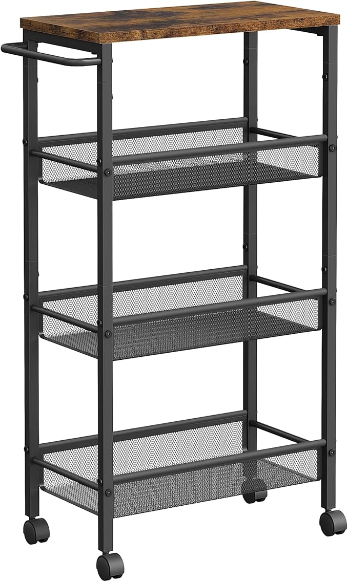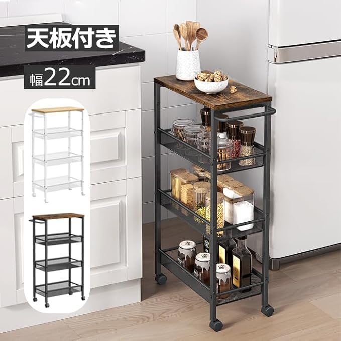 VASAGLE キッチンワゴン キッチン収納 4段 キッチンラック キャスター付き スリム 天板付き 隙間収納22CM スリムワゴンすき間収納 レンジ台所 洗面所 冷蔵庫横 高さ77cm LRC033B01
