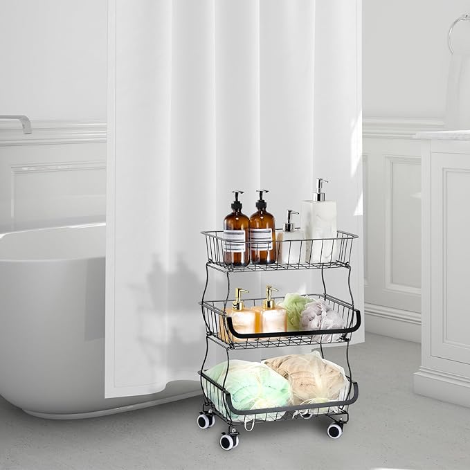ONEDONE キッチンワゴン キャスター付き ワゴン キャスター付き キッチン収納 カート ラック バスケット 大容量 各段耐荷重10キロ 多機能ランドリー収納 調味料/皿/野菜/服/雑貨収納収納 洗濯室 バルコニー 組立簡単 メタル製 黒 (3段)