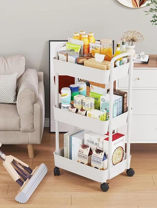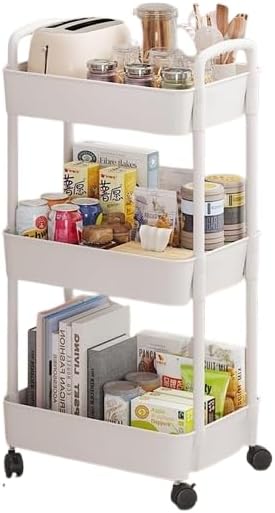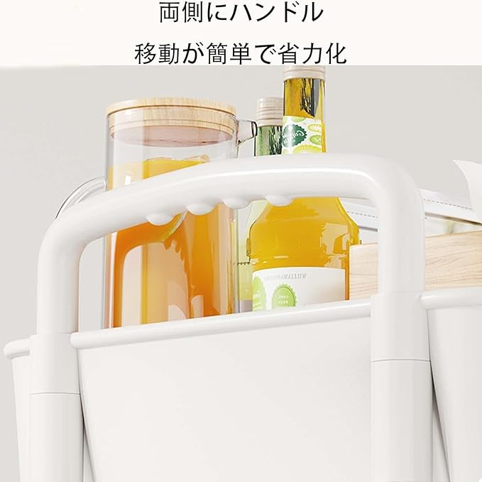 【多機能 収納ワゴン】複数のシーンで活躍、収納ワゴンをキッチンに置いて、食器、調味料、野菜を収納します。リビングルームに置いて、スナック、果物、雑物を収めます。読書室に置いて、書籍や文房具を集めます。ベッドルームに置いて、化粧品やスキンケア用品を整理します。植物を置くのにも使用でき。