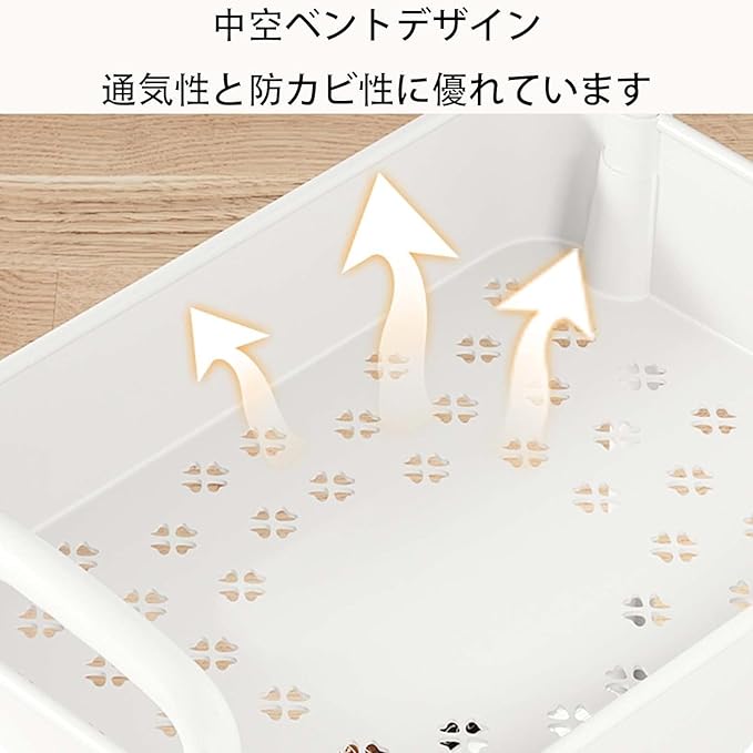 【実用的なデザイン】デスクワゴンの各収納バスケットの底には通気孔があります、通気性が良い、お掃除が簡単で、湿気が多い場所でも安心。各収納カゴの高さは7cmで、物がこぼれにくく、ペットボトルの収納にも便利。カートの両側にハンドルがあり、移動したり押したりするのに非常に便利です。