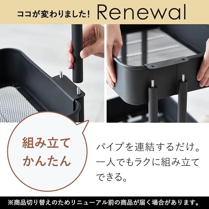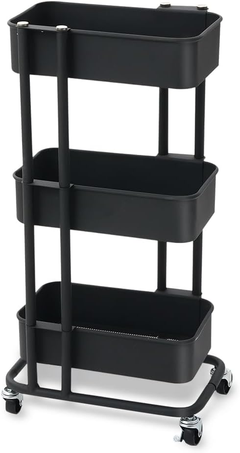 アイリスプラザ キッチンワゴン 調味料ラック バスケットラック スリム 収納ワゴン 3段 幅27.3 x 奥行38.5 x 高さ78.1 cm キャスター付 ブラック