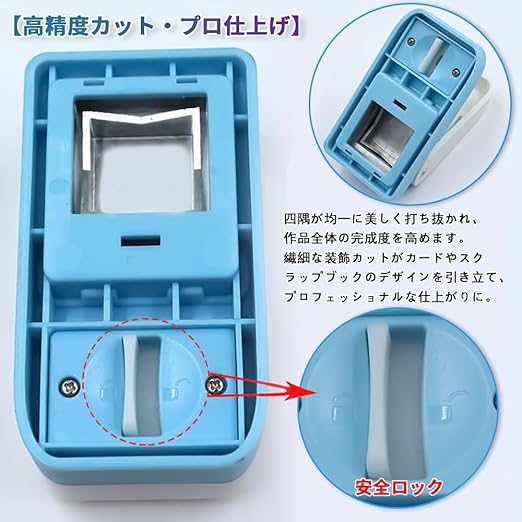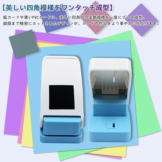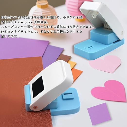 【安全設計&簡単操作】四角型パンチは安全性を考慮した設計で、小さなお子様から大人まで安心して使用可能。スムーズなレバー操作で力を入れずに簡単に打ち抜きできます。外観もスタイリッシュで、どなたでも手軽にクラフトを楽しめます。