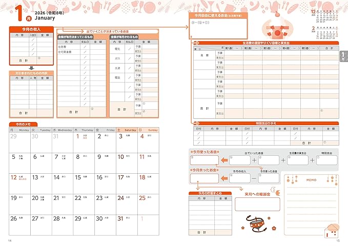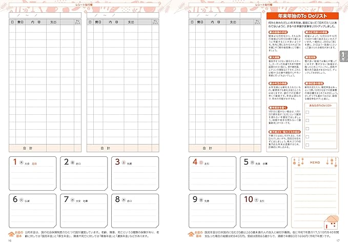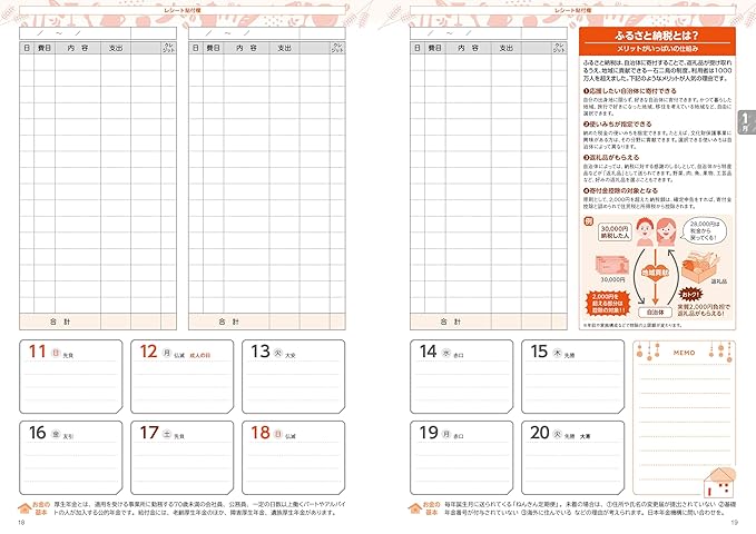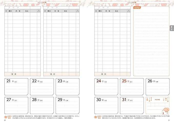 メモ欄も充実し、領収書やレシート保存に「便利ポケット」もついてます。