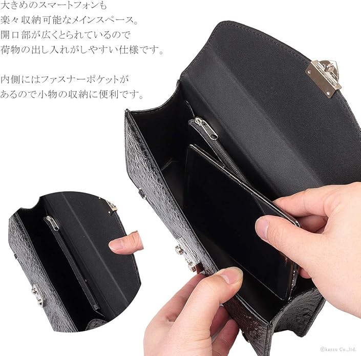 大きめのスマートフォンも楽々収納可能なメインスペース。