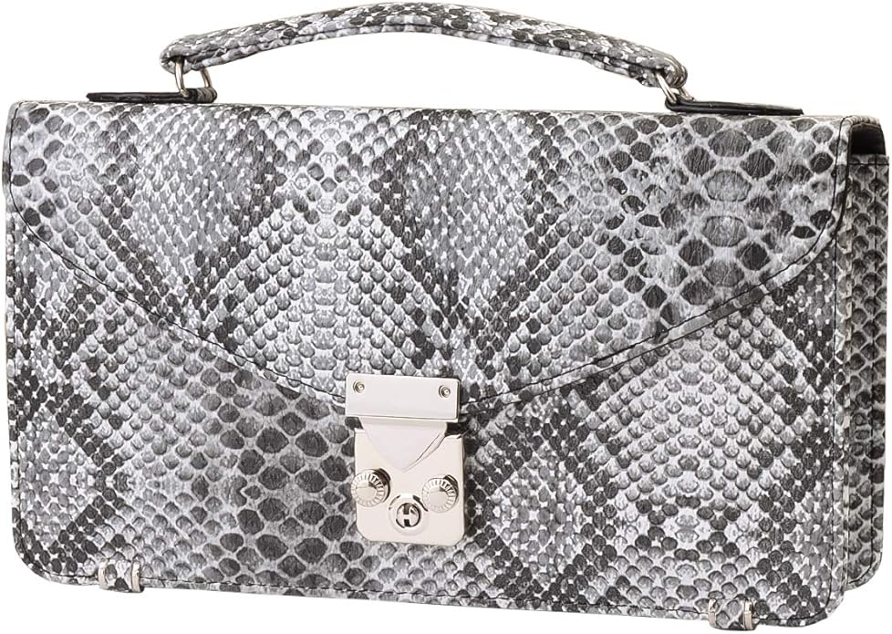 高級感溢れるパイソン、クロコダイル、オーストリッチの柄が大胆にデザインされたコンパクトなセカンドバッグ。