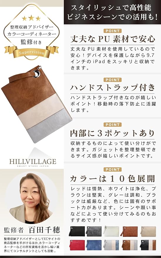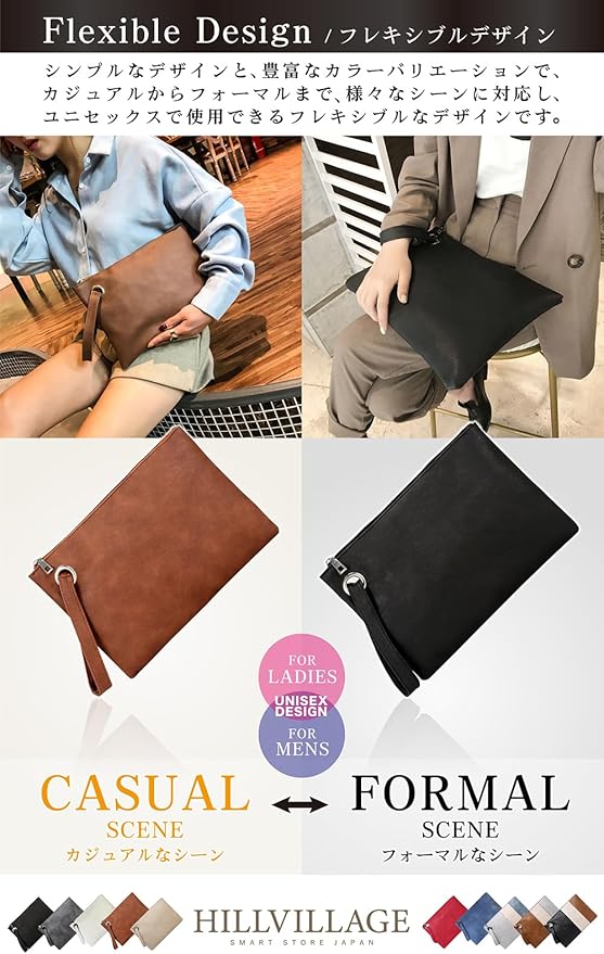 【カジュアルからフォーマルまで対応するフレキシブルデザイン】このクラッチバッグは、整理収納アドバイザー兼カラーコーディネーターの百田千穂氏の推奨を受けて設計され、どんな場所にも適応します。高品質のPUレザーを採用し、本革のような質感で快適な手触りを提供します。どんなシーンにも自然と溶け込むデザインを実現しています。