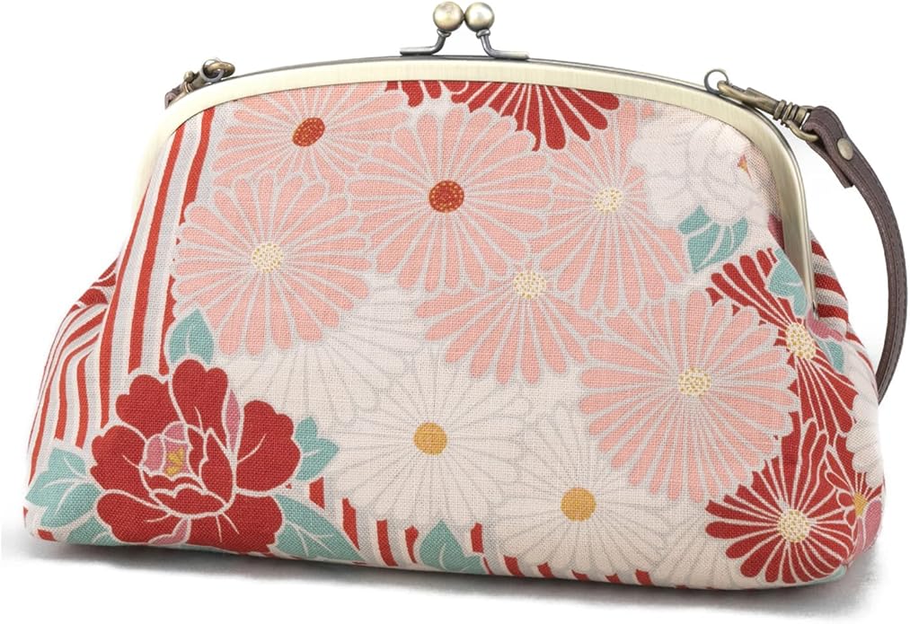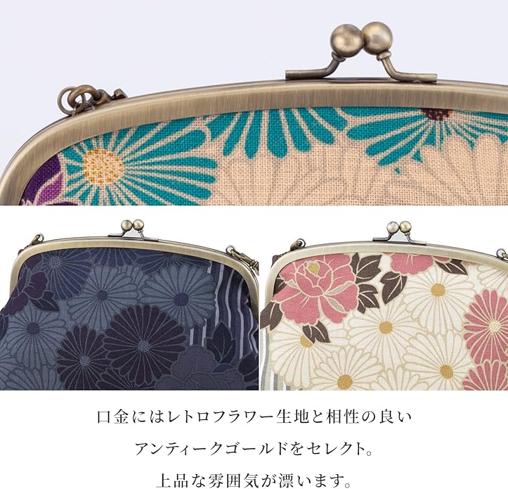 [のレン] がま口 ショルダーバッグ レディース 斜めがけ ハンドバッグ クラッチバッグ(レトロフラワー) / 日本製 和装バッグ / 成人式 結婚式 和装 着物 浴衣