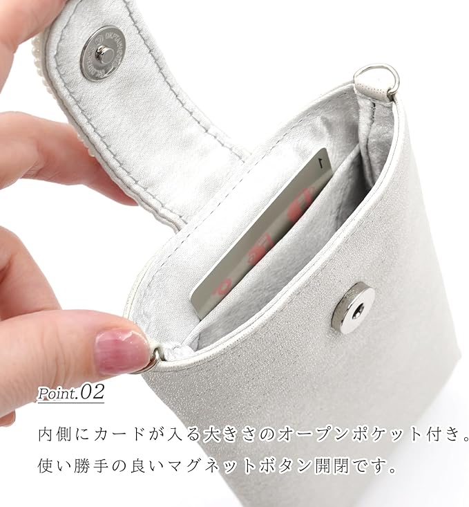 パーティーや謝恩会など華やかな席で大活躍のキレイめスマホショルダーバッグ。