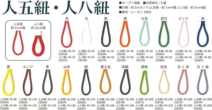 タカギ繊維 Panami 人五紐 約1mm幅 約5mカット 白 JG- 20 レーヨン100%