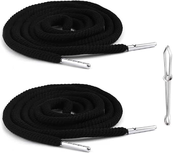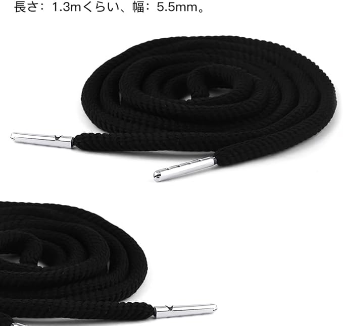 サムコス コード 2本入り 5.5mm幅 巾着 紐 手作り DIY材料 ひも スポーツ パンツ ポロシャツ 服飾り 交換用 スポーツウェア用 アクセサリー (黒色,D)
