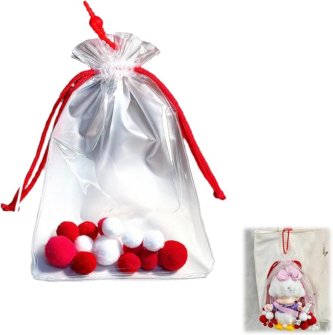 限定商品 痛バッグ ぬいぐるみポーチ 19/21cmサイズ対応 ぬいポーチ 人形の保管場所 ぬい 外出 見せバッグ 推し活グッズ 巾着型 高い透明 防塵 防水 ポンポンボール& 盗難防止ロープ (赤(18*21CM))