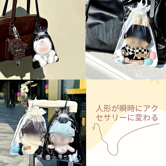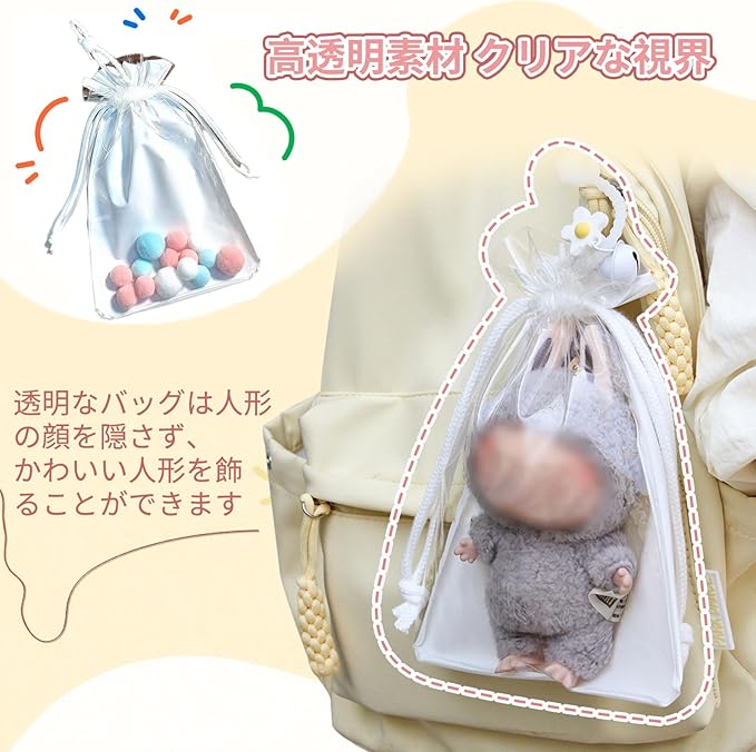 【透明度の高い素材】このぬいぐるみバッグは透明度の高いPVC素材で作られています。透明度の高い素材が、大切なドールやフィギュアを美しく見せます。薄手ながらも丈夫で、型崩れやシワになりにくく、ドールのディスプレイに最適です。