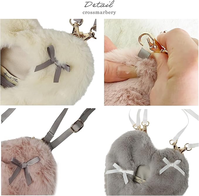 推しのぬいぐるみをハートとリボンで可愛く飾って持ち運べます。ショルダー紐は2way仕様で短い紐はバッグにチャームとして、長い紐は肩掛けにして持ち運べます。