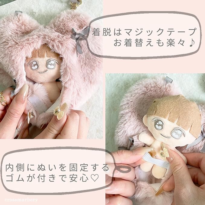 [クロスマーベリー] ぬいショルダー 服 おくるみ 2way チャーム 推し活 推し ぬいぐるみ 10cm 肩掛け マジックテープ バッグチャーム ぬい活 ぬい服 着せ替え ライブ R84 ピンク