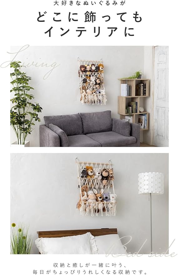 【吊り下げ収納で空間活用】お気に入りのぬいぐるみや生活雑貨をすっきり可愛く収納。吊り下げて飾れるハンモック型。デッドスペースを活かした壁掛け省スペース収納。実用性とおしゃれさを兼ね備え、リビングや子供部屋、寝室などどんな空間にも自然になじみます。ぬいぐるみの整理や片付けに困っている方におすすめのアイテムです。