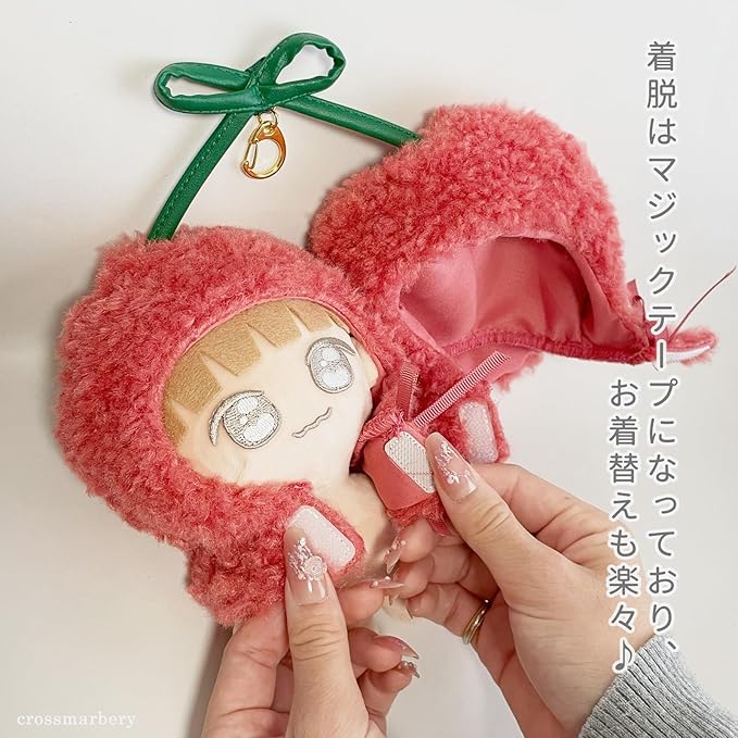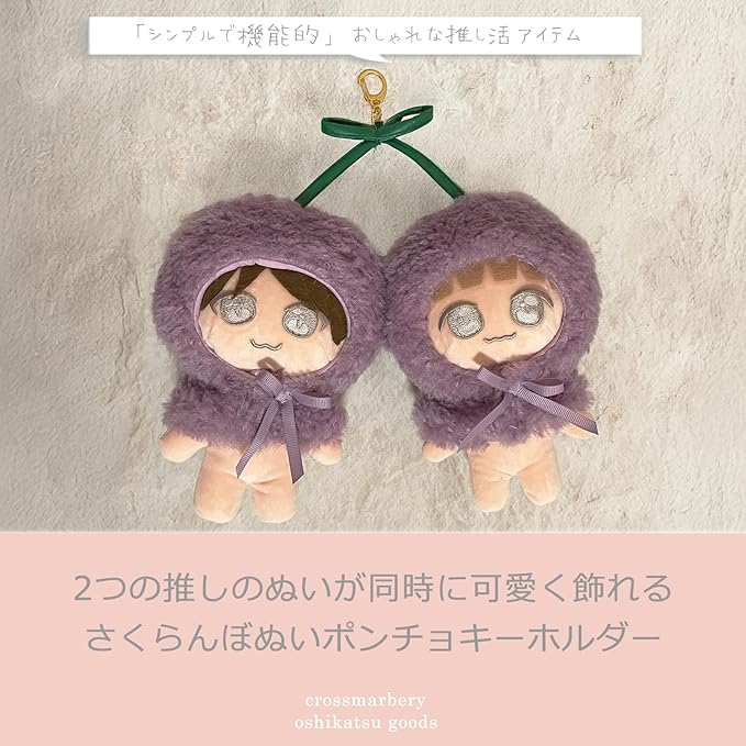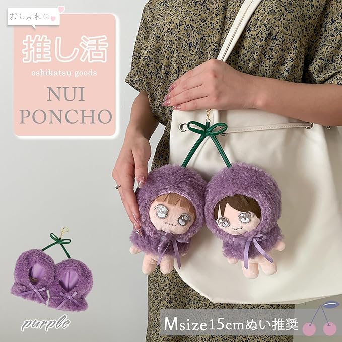 [クロスマーベリー] ぬい 15cm ポンチョ ぬい服 ぬいぐるみ キーホルダー チャーム 推し活 さくらんぼ 着せ替え ぬい活 ぬい撮り 韓国 コンサート ライブ グッズ R80 パープル M