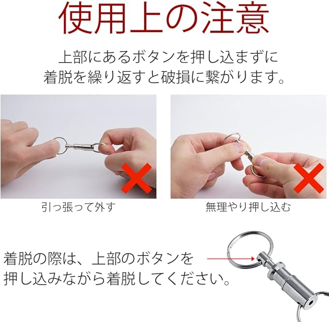 キーホルダーに鍵などを取り付けて、使用する際に上下に分離させれば鍵などを使いやすくなります