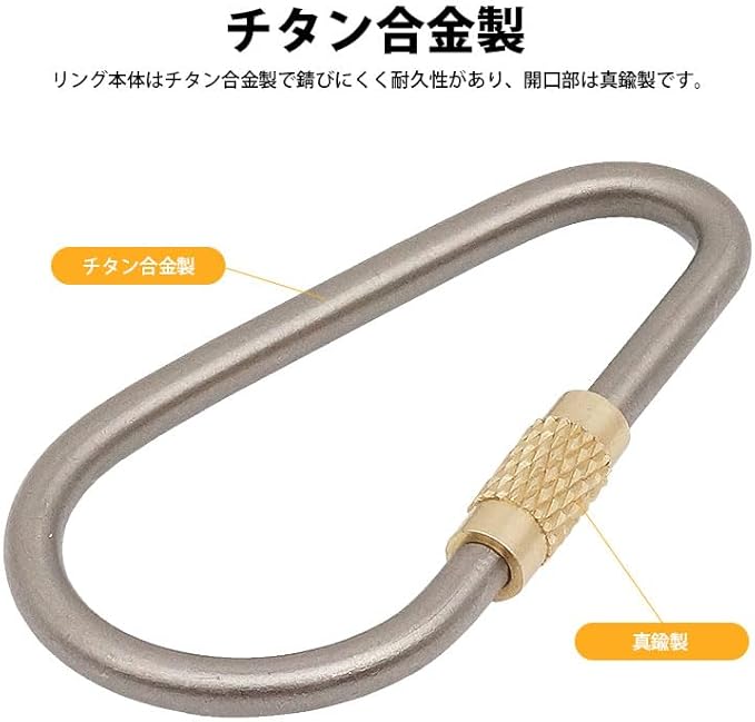 サイズ(約):25.5mm 49mm 開口部(約):4.5mm 材質:チタン合金、真鍮 入数:2個 重量(約):4g