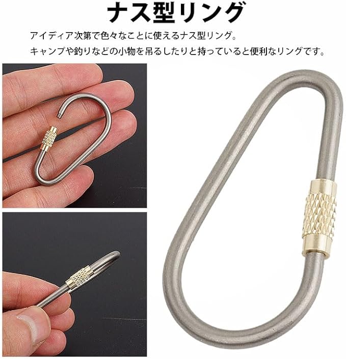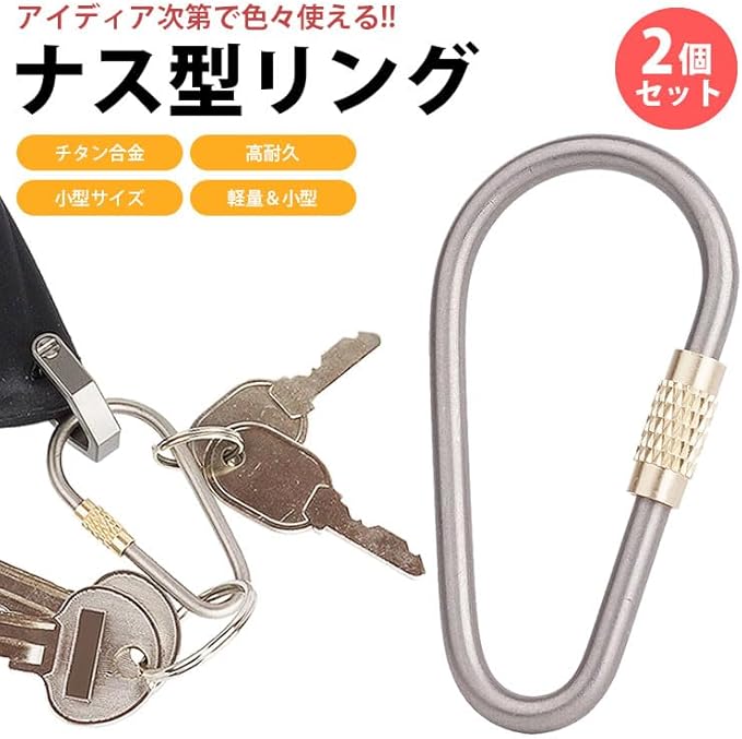 prendre ナス型 リング 2個セット チタン合金 キーリング キーホルダー ネジ式 高耐久 軽量 小型 簡単取付 カギ 鍵 アウトドア キャンプ 釣り 持ち運び PR-NASRING10-2ST