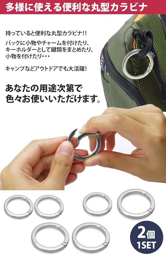 prendre 【2個セット】 カラビナ 丸型 サークルカラビナ 35mm 44mm キーリング 丸カン キーホルダー バッグ チャーム アウトドア 鍵 PR-2MARUSET