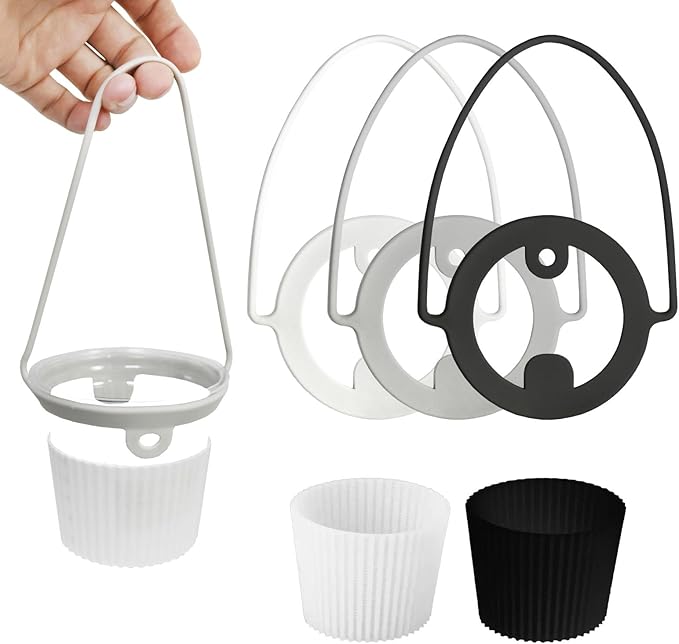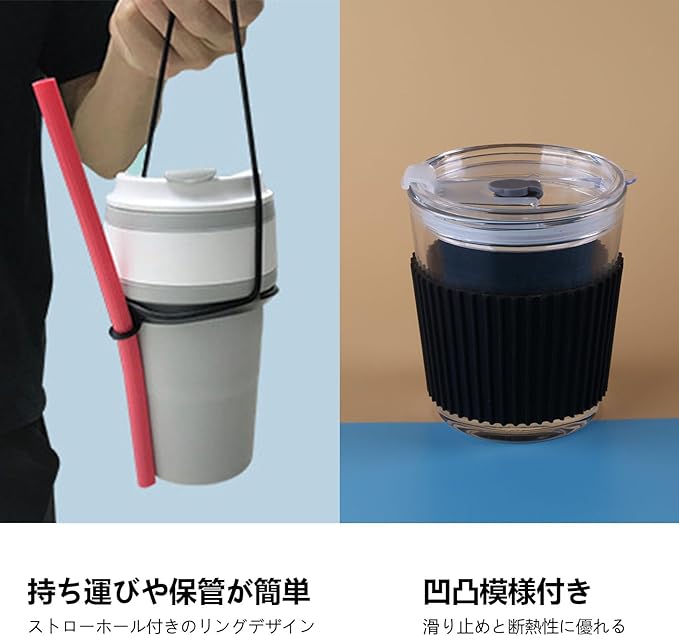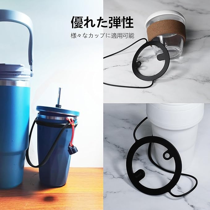 【梱包内容】:シリコンカップストラップ(3個)(黒+白+グレー)+断熱カップスリーブ2個(黒+白)、取扱説明書*1。