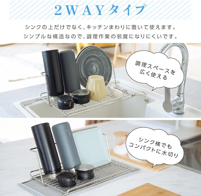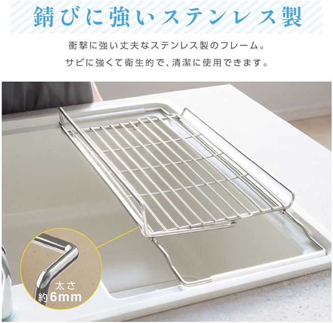 【高耐久ステンレスで錆びにくい】防水・錆びに強い高品質ステンレス素材を採用し、油汚れや水蒸気の影響を受けにくい耐蝕性を実現。変形や破損の心配がなく、長く愛用できる丈夫で耐久性の高い水切りラックです。
