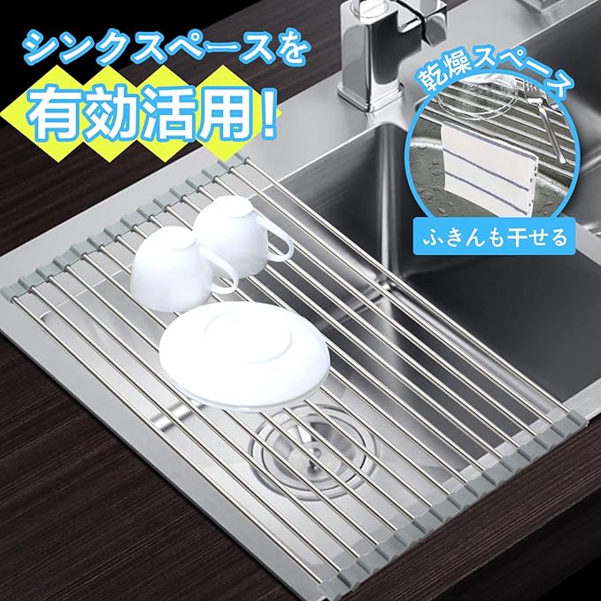【折畳み式水切りラック】折り畳んで、キッチンスペースを有効活用できます。 収納しやすくて省スペース。 キッチンの乾きが楽に、楽しく、生活がもっと簡単!