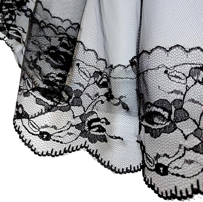 【優雅で繊細なディテール】 このブラックベールは、縁に施された繊細なレースがポイント。花嫁の顔周りを美しく飾り、どんなウェディングドレスにも洗練されたアクセントを加えます。フェイスアップヴェールとしての機能もあり、挙式の際に花嫁の美しい姿をより一層引き立てます。