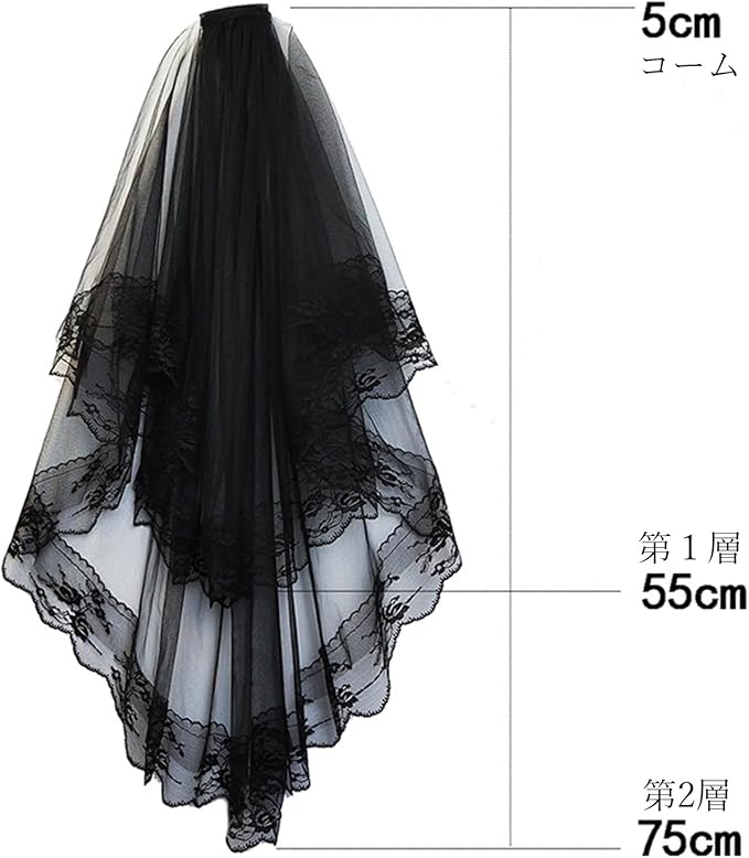 【モダンでドラマティックなスタイル】 伝統的な白のベールとは一味違う、ブラックのカラーが花嫁の個性を際立たせます。このモダンでドラマティックなベールは、クールでスタイリッシュな印象を与え、ゲストの注目を集めます。ユニークでインパクトのあるスタイルを求める花嫁にぴったりです。