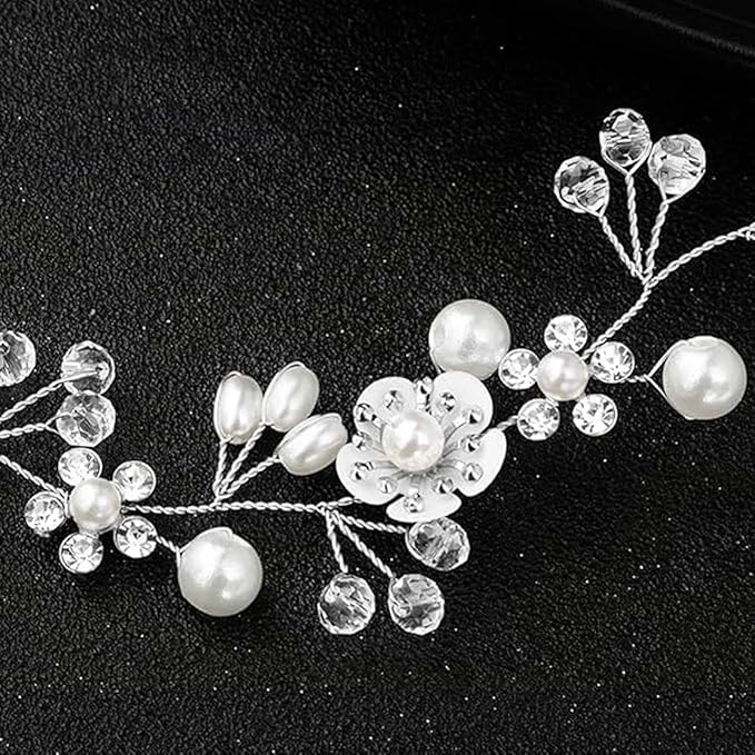 【素敵なプレゼント】美しい白いお花とパールビジュー ヘッドドレスは娘、友人、学生、妻などにプレゼントし、女の子に無限の魅力を与えます。