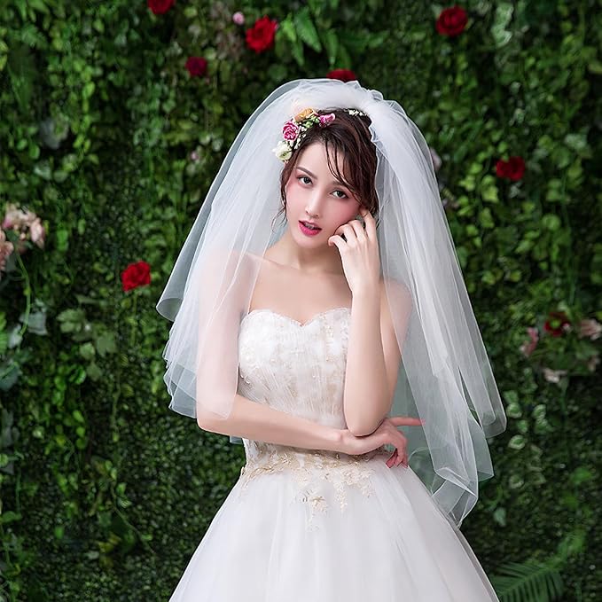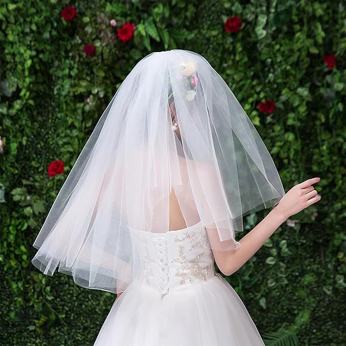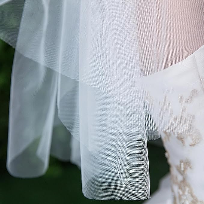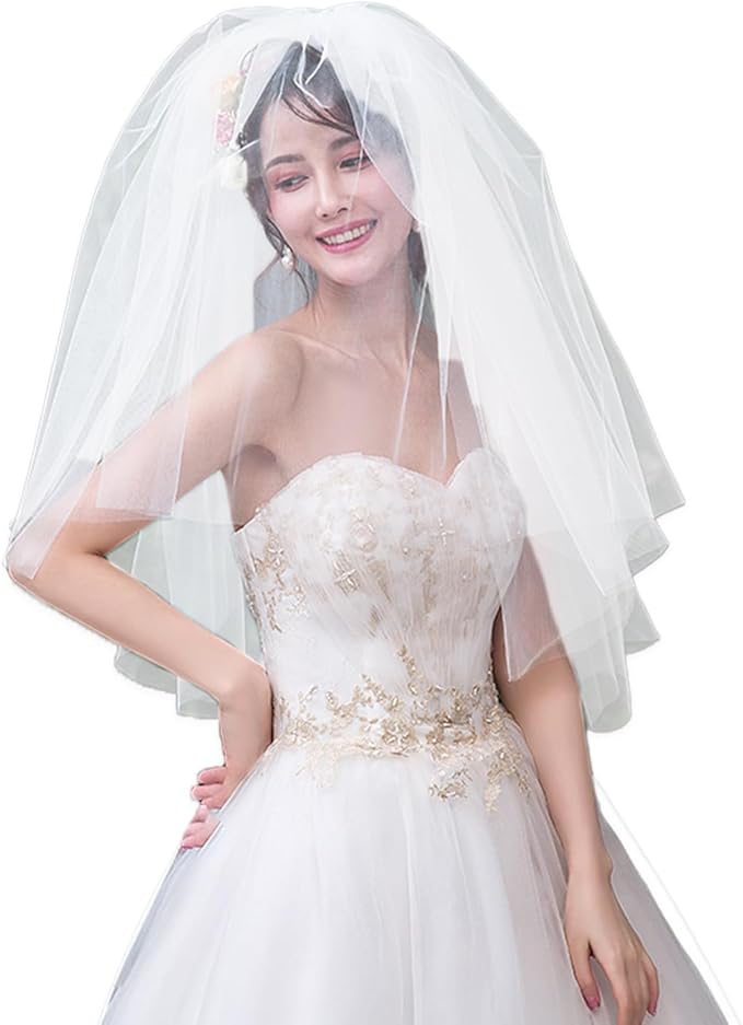 [トカリリ] ウエディングベール 結婚式 ベール ウエディング 花嫁 2層 ホワイト ミディアム 生地 パール 二次会