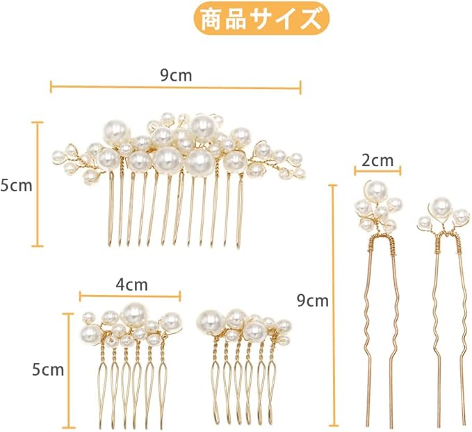 【商品内容】5個セット、大きいパールヘアアクセサリー*1、小さいパールヘアアクセサリー*2、パールヘアピン*2。