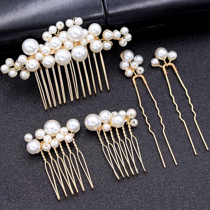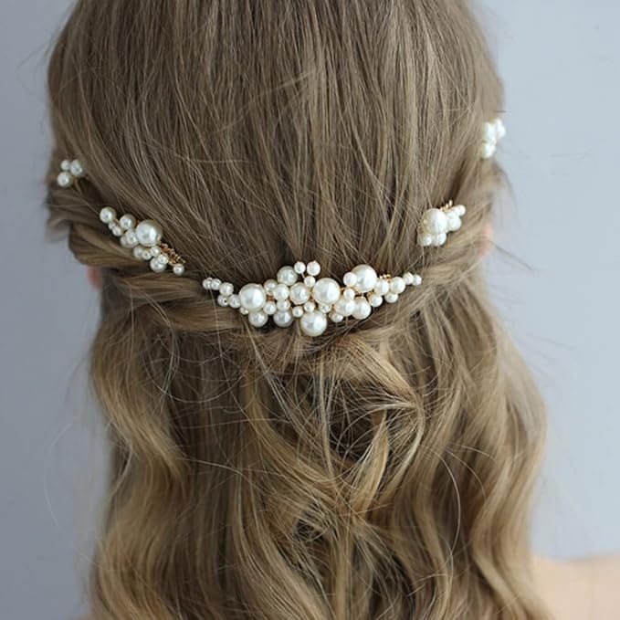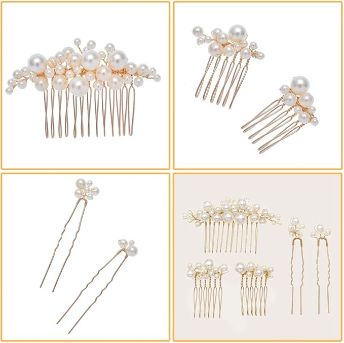 DFsucces パール 髪飾り ヘッドドレス Uピン ヘアピン かんざし 和装 撮影 結婚式 ウェディング パーティー 花嫁などの髪飾り用 5個セット (ゴールド)