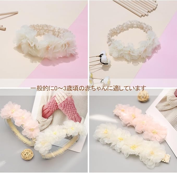 【セット内容】可愛いベビーヘアバンドの3点セットです。参考年齢:3ヶ月~3歳頃。