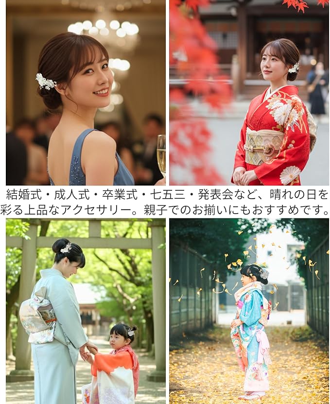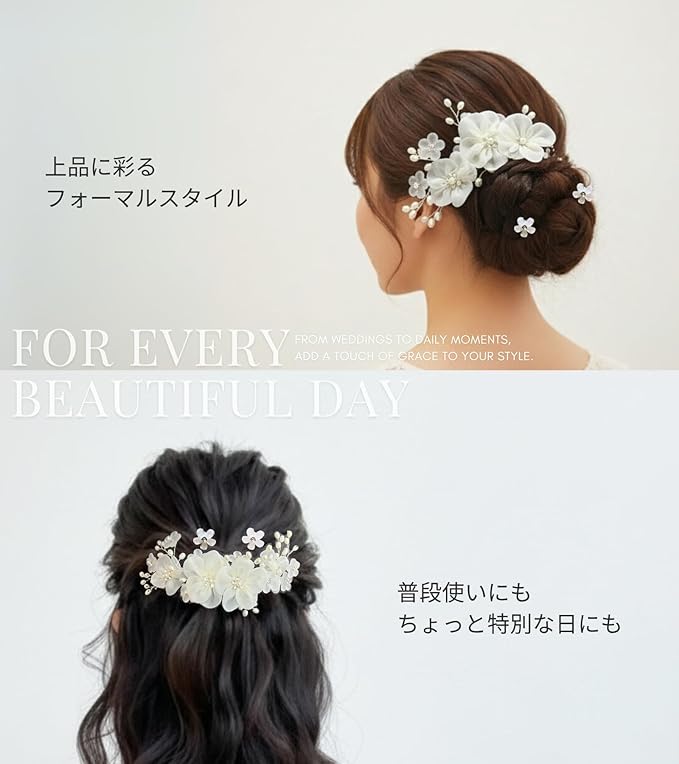 ✨️【着用スタイル】ドレスにも浴衣や着物にも合わせやすく、まとめ髪・ハーフアップ・編みおろしなど、さまざまなヘアスタイルに自然になじみます。