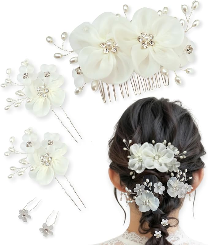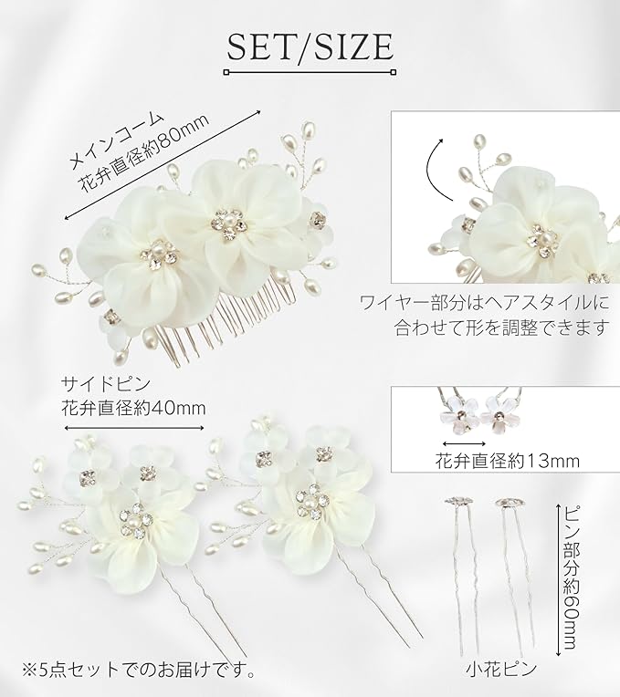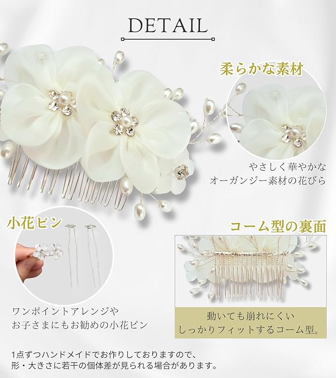 [Toteca]髪飾り ヘアアクセサリー 髪留め コーム ヘアピン ヘッドドレス 簡単 結婚式 成人式 発表会 入学式 卒業式 七五三 パーティ ドレス 浴衣 着物 和装 袴 ホワイト 花