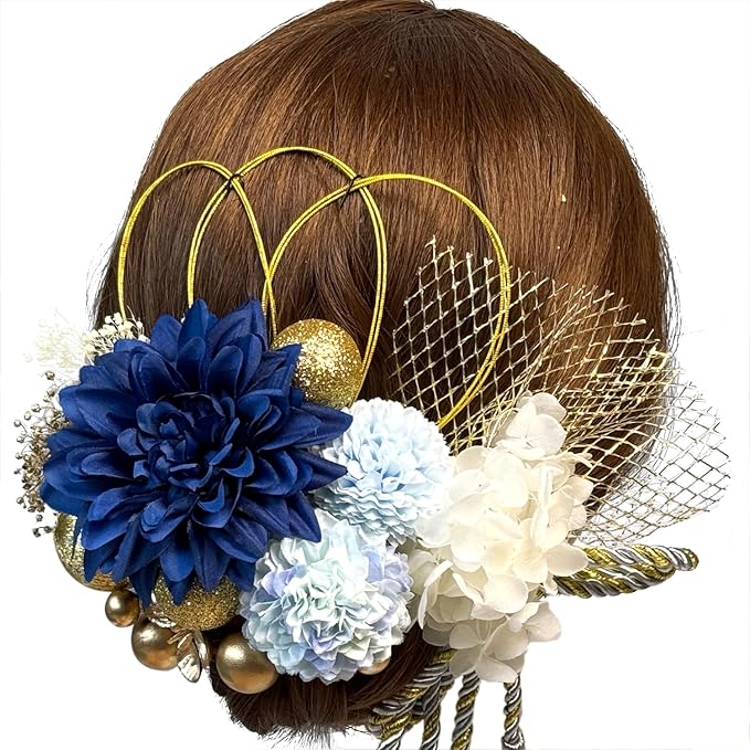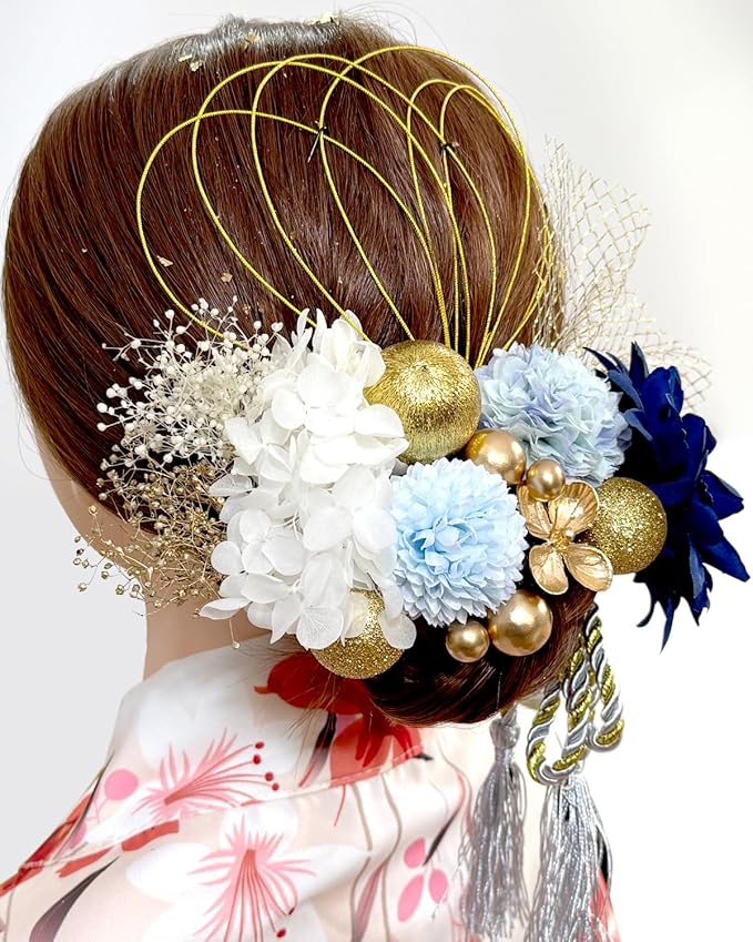 [ULITU] 髪飾り 成人式 卒業式 ヘアーアクセサリー ドライフラワー 造花飾り 水引 紐 紫陽花 ダリア かすみ草 金箔 人気 和服 着物 振袖 袴 花火大会 浴衣 七五三 結納 入学式 結婚式 発表会 夏祭り