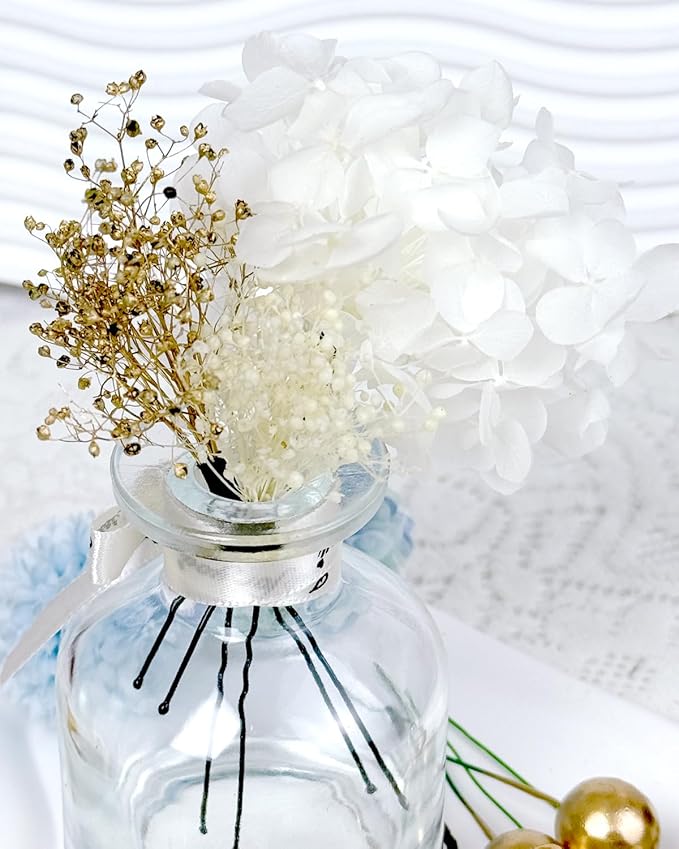 【プリザーブドフラワーについて】 当店はあじさいとかすみ草の髪飾りに本物のプリザーブドフラワーを使用しております。天然素材のため、ひとつひとつ色合いや、カタチが異なります。一点一点手作りで個体差がありますのであらかじめご了承ください。