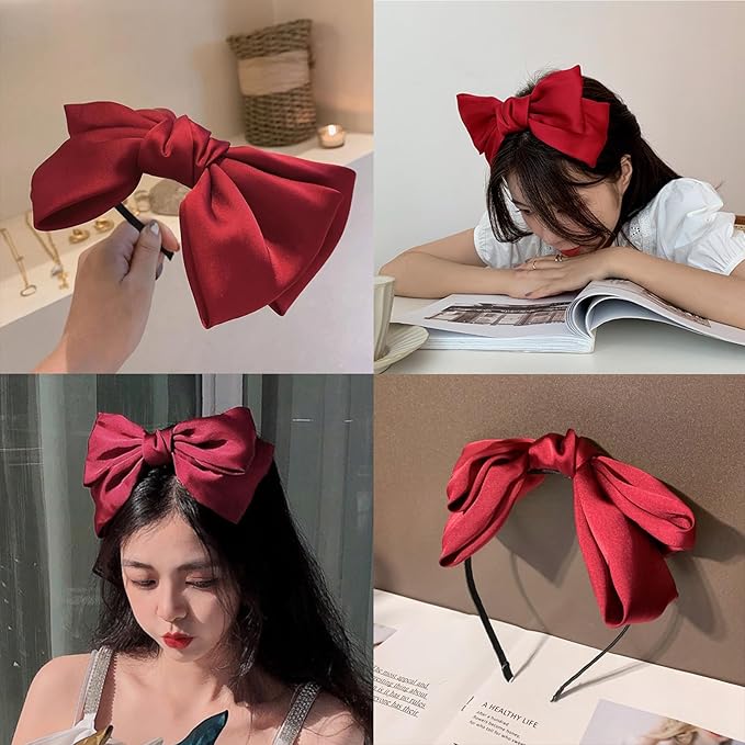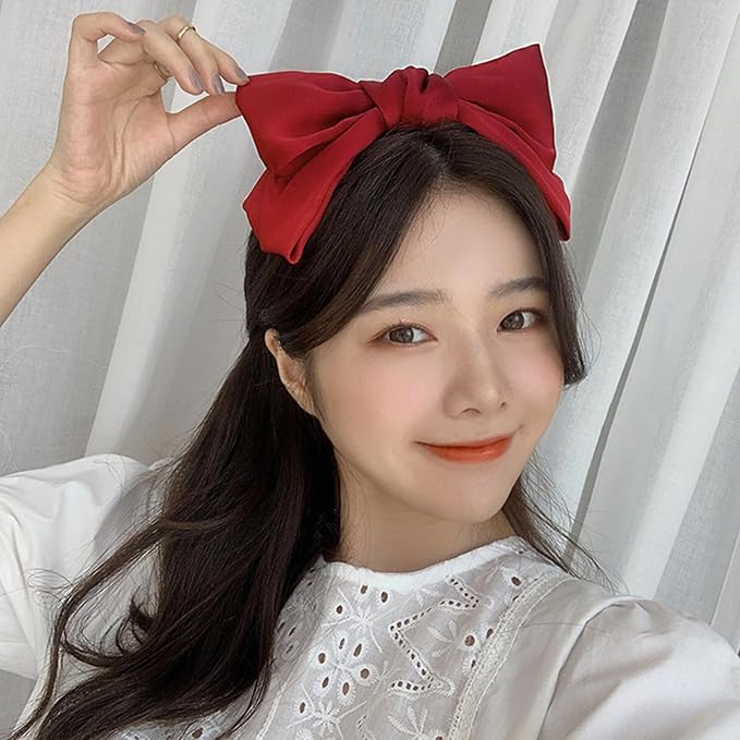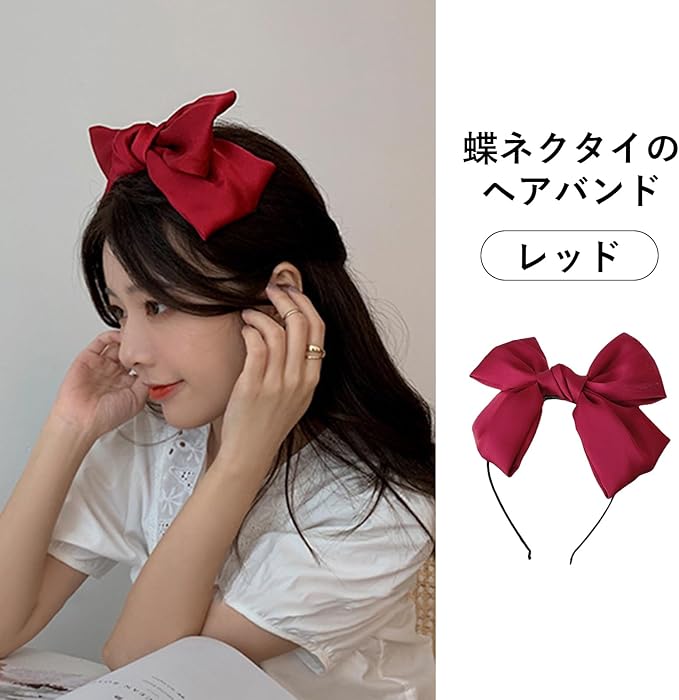 カチューシャ ヘアアクセサリー レディ リボン 細め ヘッドアクセ 韓国 ロリータ 可愛い 髪飾り シフォンサテン 大人 おしゃれ ヘアアレンジ やわら (赤)