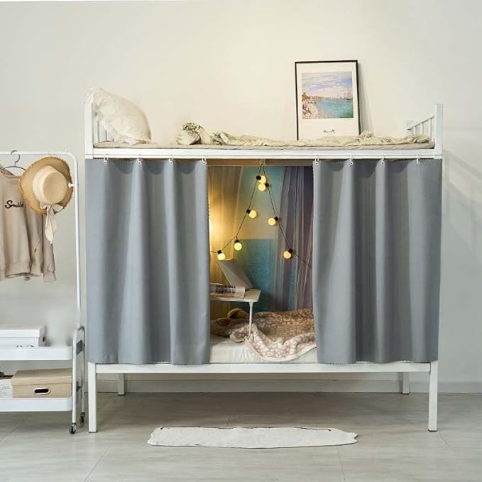【2段ベッドカーテン】上段と下段兼用、ベッドの側面と正面を覆うことができ、一人の時間を楽しむための個人的なプライバシースペースを作り出します。99%遮光性を備え、静かで快適な空間を作りますので、お昼寝時間、就寝時、安眠の促進にも役に立つ寮用カーテンです。
