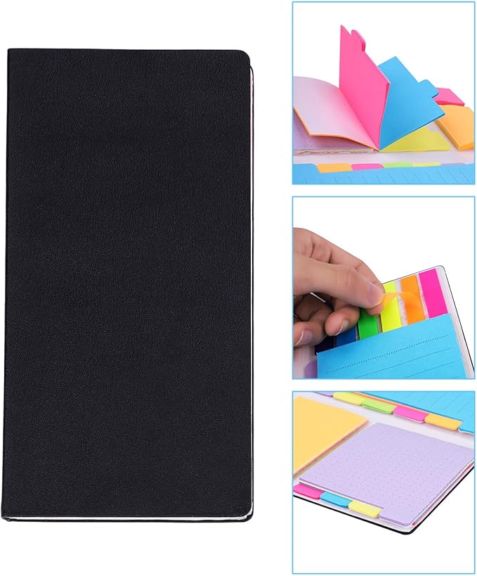 カラフル、大小異なり、6種類の付箋がお揃いますので、ご用途に合わせて勝手よく自由にご使用いただけます。PU革製カバー、手帳タイプ付箋なので、持ち運びにも便利!