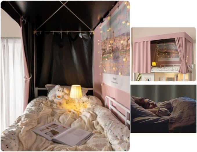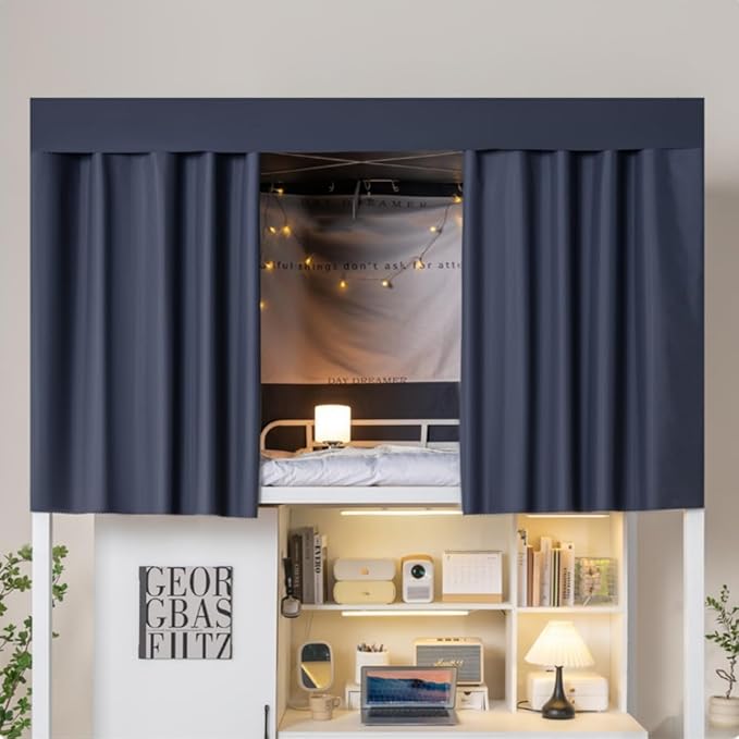【2段ベッドカーテン】上段と下段兼用、ベッドの側面と正面を覆うことができ、一人の時間を楽しむための個人的なプライバシースペースを作り出します。99%遮光性を備え、静かで快適な空間を作りますので、お昼寝時間、就寝時、安眠の促進にも役に立つ寮用カーテンです。