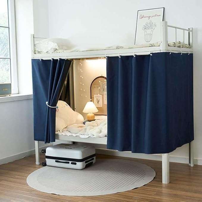 2段ベッドカーテン 寝室カーテン 厚手 遮光カーテン 上段下段用蚊帳 目隠し 間仕切り 通気性 防風 保温 透けないカーテン 子供部屋 学生 寮用カーテン 男女兼用 お部屋装飾 インテリア 紐とフック付き 取り付け簡単 1.15m*2m 1枚入り ネイビー