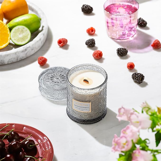 ダークベリー&ベルガモット: レッドベリー、オレンジ、チェリー、プラム、グレープのフルーティーな花束に、バニラ、キャラメル、パチョリのほのかな甘みを加えた幻想的なブレンド。空間に喜びと心地よさを運びます。