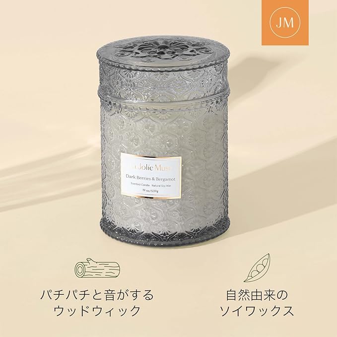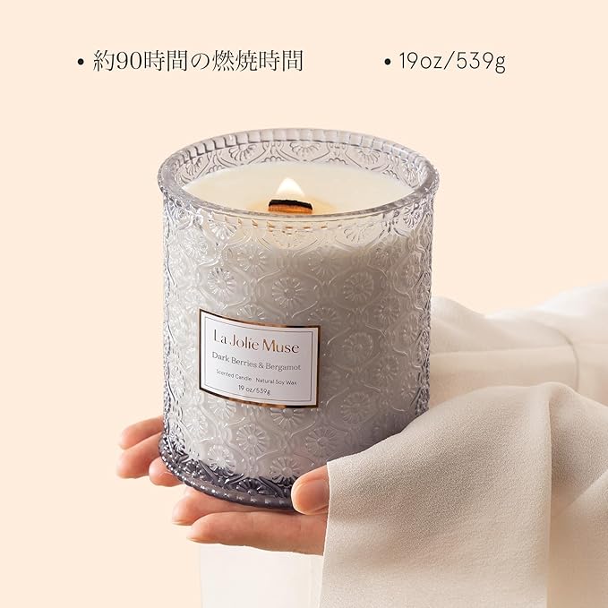 LA JOLIE MUSE ダークベリー&ベルガモット キャンドル アロマキャンドル 大容量 木芯 ソイワックス 贈り物にぴったり 539g